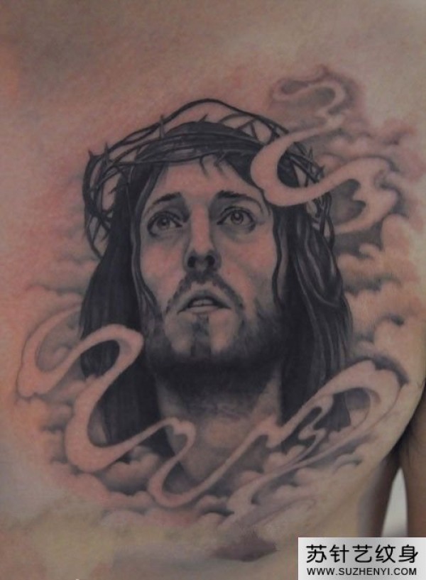 胸前耶稣肖像刺青图_肖像纹身图案大全_纹身图吧