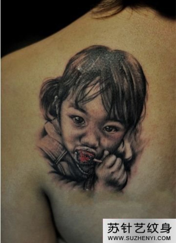 后背个性唯美人物肖像时尚纹身_肖像纹身图案大全_纹身图吧