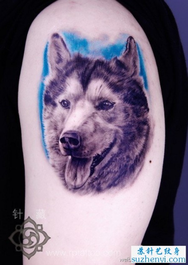 手臂小狗肖像纹身_肖像纹身图案大全_纹身图吧