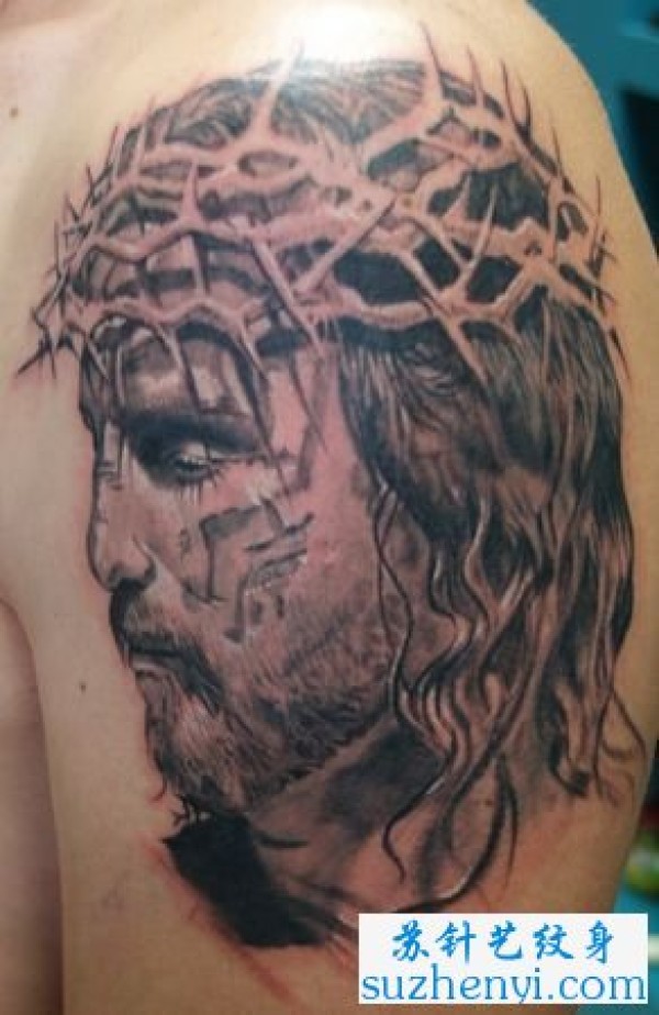 大臂耶稣肖像头像纹身_肖像纹身图案大全_纹身图吧