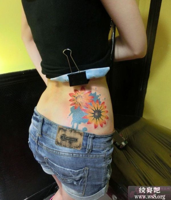 腰上泼墨花创意刺青图案_腰部纹身图案大全_纹身图吧