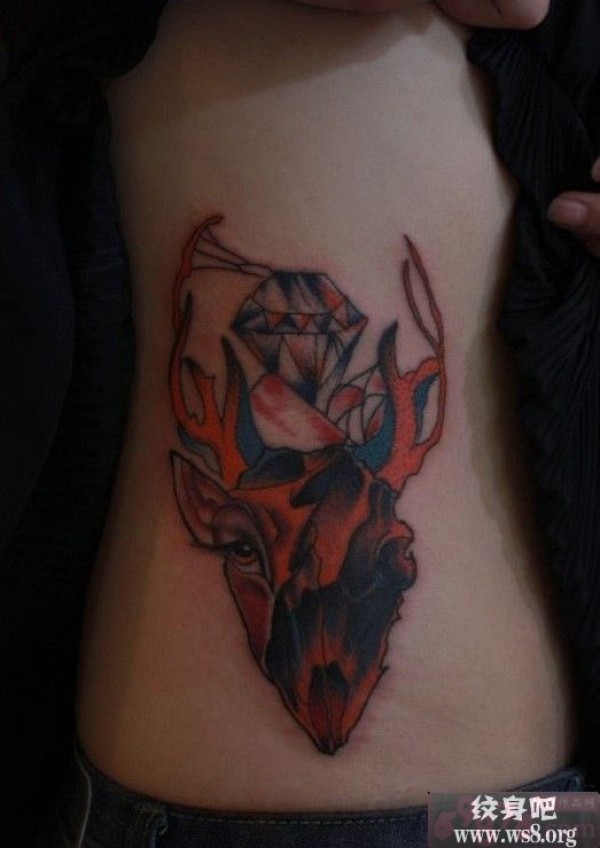 麋鹿钻石唯美腰部纹身图案_腰部纹身图案大全_纹身图吧