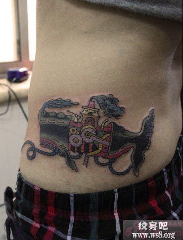 鲸鱼小火车腰部纹身图案_腰部纹身图案大全_纹身图吧