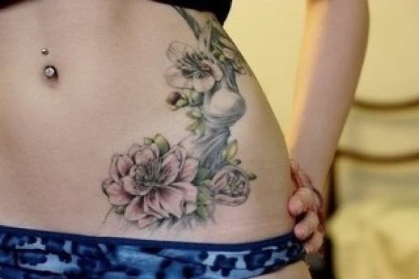 女性腰部莲花刺青_腰部纹身图案大全_纹身图吧