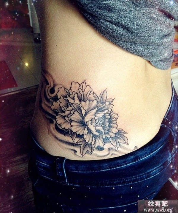 侧腰富贵的牡丹纹身图案图案_腰部纹身图案大全_纹身图吧