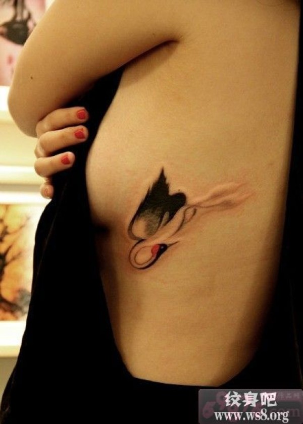 腰部抽象水墨丹顶鹤图案_腰部纹身图案大全_纹身图吧