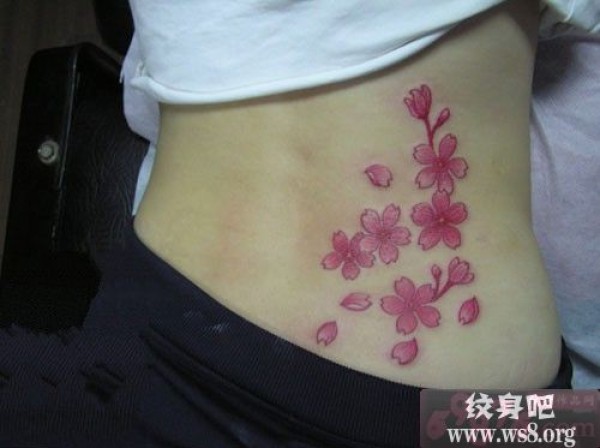侧腰樱花唯美纹身图案图案_腰部纹身图案大全_纹身图吧
