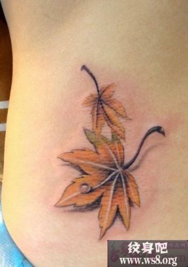 腰部枫叶唯美纹身图案_腰部纹身图案大全_纹身图吧
