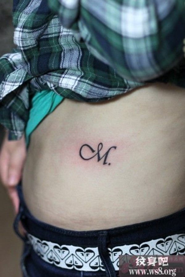 腰部字母M时尚刺青图案_腰部纹身图案大全_纹身图吧