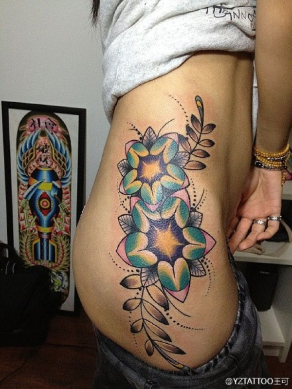 很漂亮的女性右腰花纹刺青_腰部纹身图案大全_纹身图吧