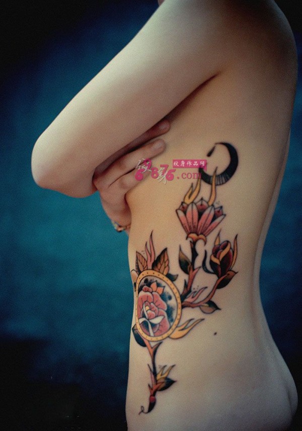 美女侧腰梅花纹身_腰部纹身图案大全_纹身图吧