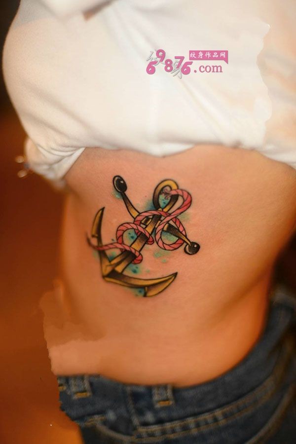腰部彩色铁锚纹身图案纹身图片_腰部纹身图案大全_纹身图吧