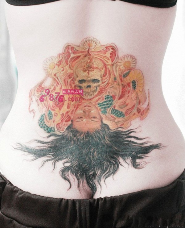 后腰唯美骷髅与头像图腾纹身_腰部纹身图案大全_纹身图吧