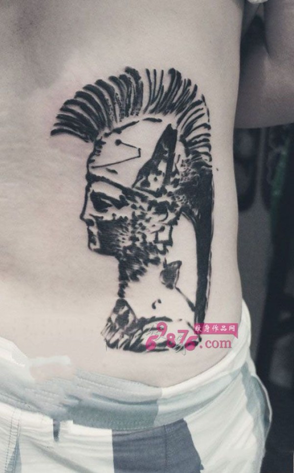 水墨风阿瑞斯神像腰部纹身_腰部纹身图案大全_纹身图吧