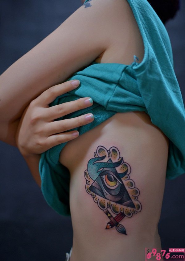 艺术风三角眼性感腰部纹身_腰部纹身图案大全_纹身图吧