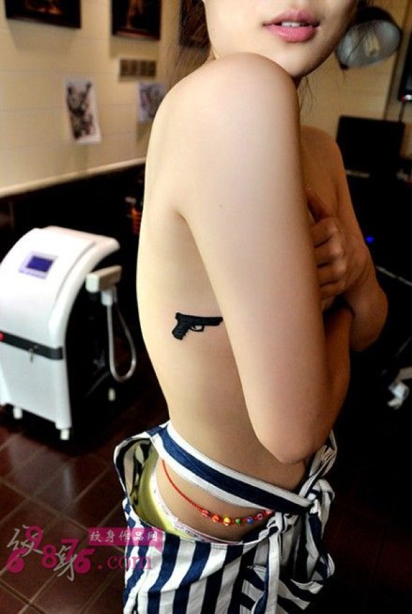 性感小蛮腰手枪个性纹身_腰部纹身图案大全_纹身图吧