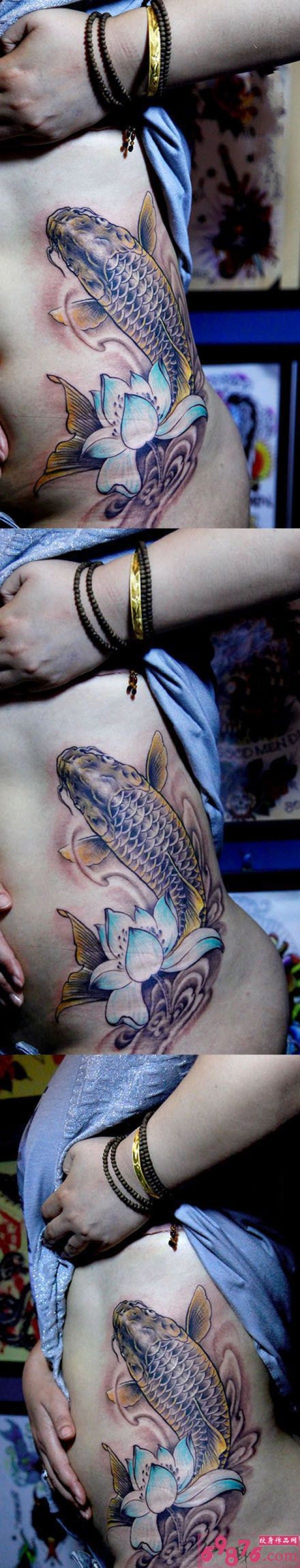 高清中国传统鲤鱼腰部纹身_腰部纹身图案大全_纹身图吧