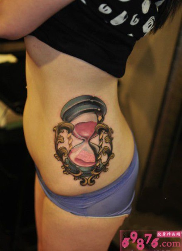 欧美复古沙漏腰部纹身_腰部纹身图案大全_纹身图吧