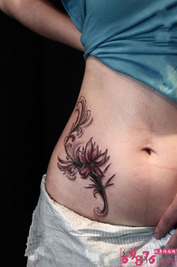 性感腰部妖娆花图腾纹身_腰部纹身图案大全_纹身图吧