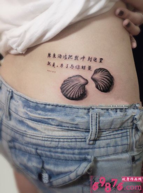 唯美贝壳汉字腰部纹身_腰部纹身图案大全_纹身图吧