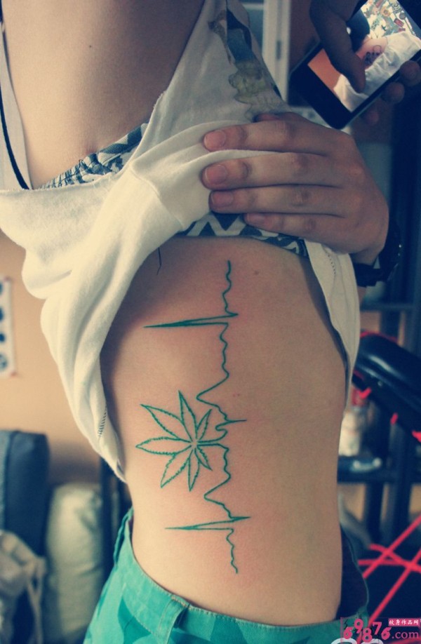 树叶心电图创意腰部纹身_腰部纹身图案大全_纹身图吧