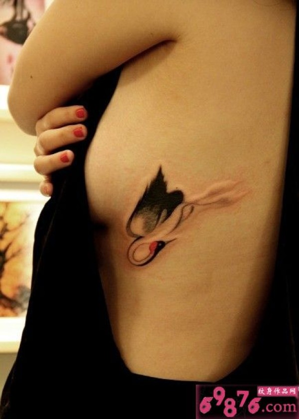 腰部抽象水墨丹顶鹤_腰部纹身图案大全_纹身图吧