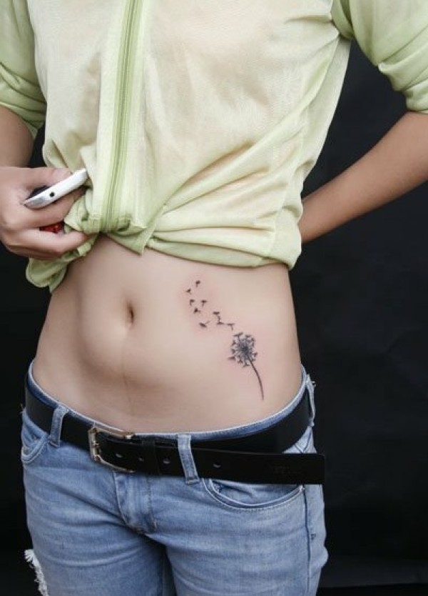 美女性感腹部蒲公英纹身_腰部纹身图案大全_纹身图吧