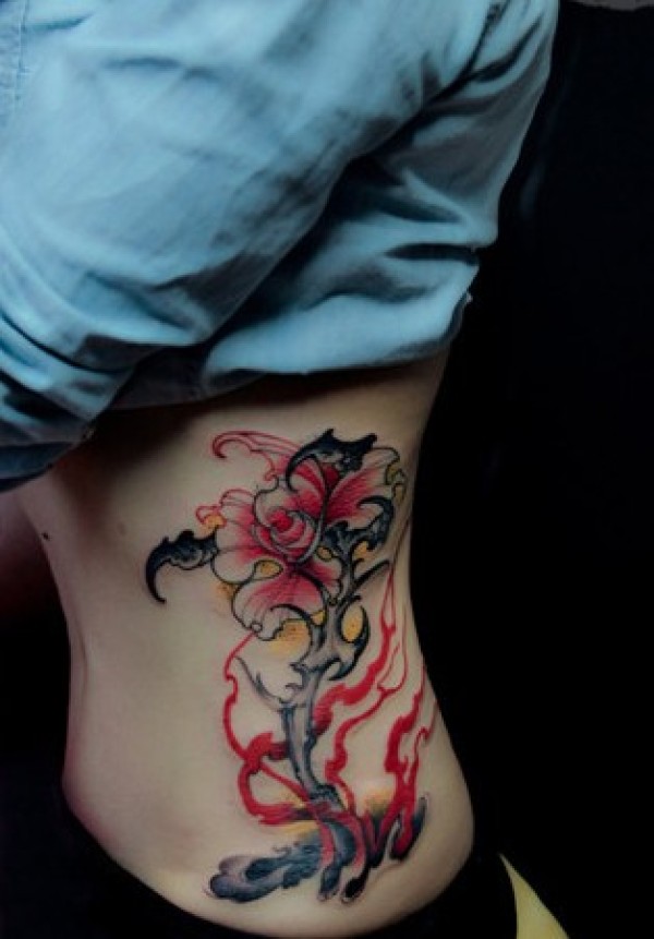 腰部唯美花刺青_腰部纹身图案大全_纹身图吧