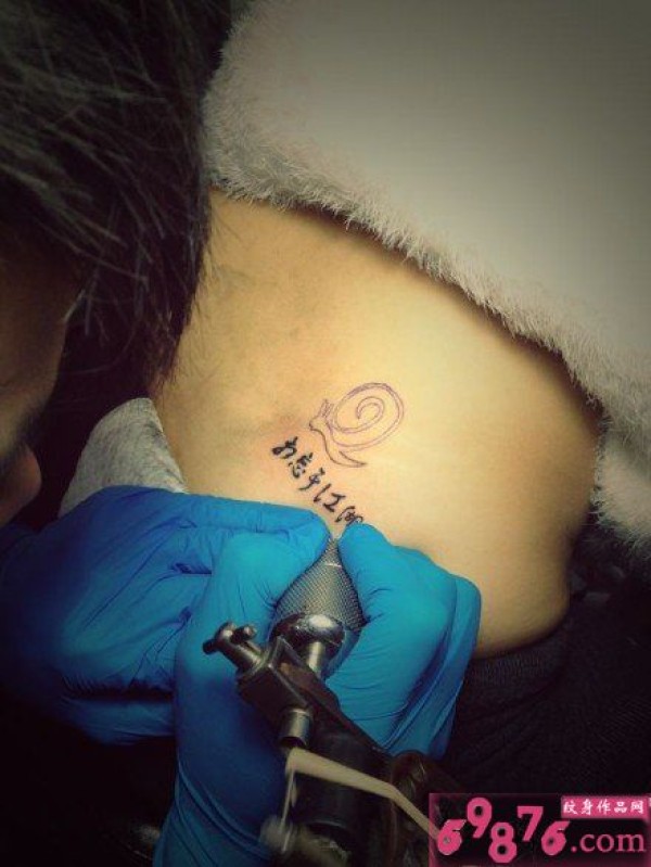 后腰蜗牛与汉字个性纹身过程_腰部纹身图案大全_纹身图吧