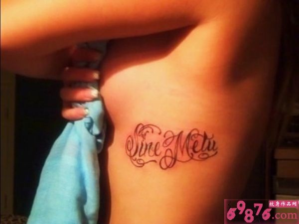 性感女生侧腰英文纹身_腰部纹身图案大全_纹身图吧
