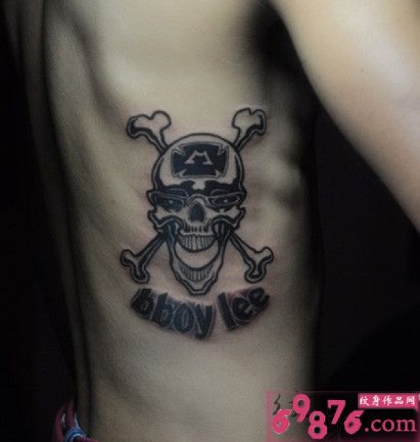 男人腰部邪恶骷髅英文刺青_腰部纹身图案大全_纹身图吧