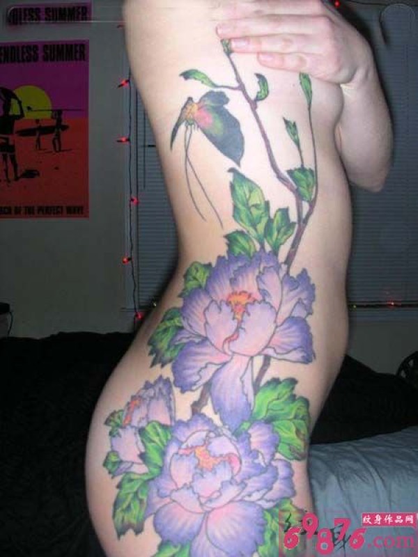 美女侧腰性感花朵纹身_腰部纹身图案大全_纹身图吧