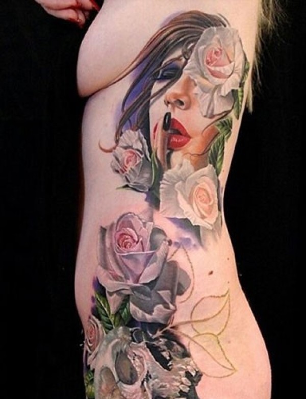 男人侧腰很酷的亡灵装美女纹身_腰部纹身图案大全_纹身图吧