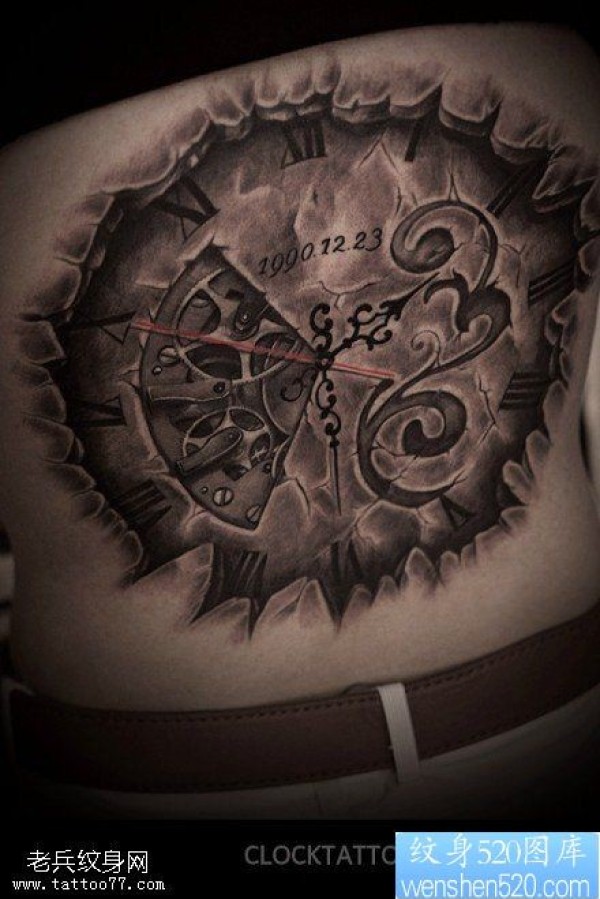 超屌的腰部机械时钟纹身图片_腰部纹身图案大全_纹身图吧