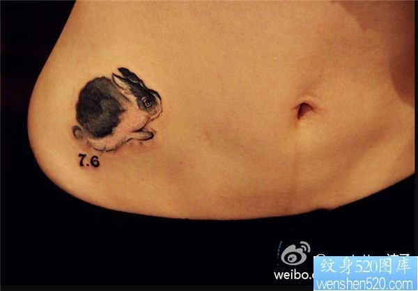 腰部个性水墨兔子纹身图案_腰部纹身图案大全_纹身图吧