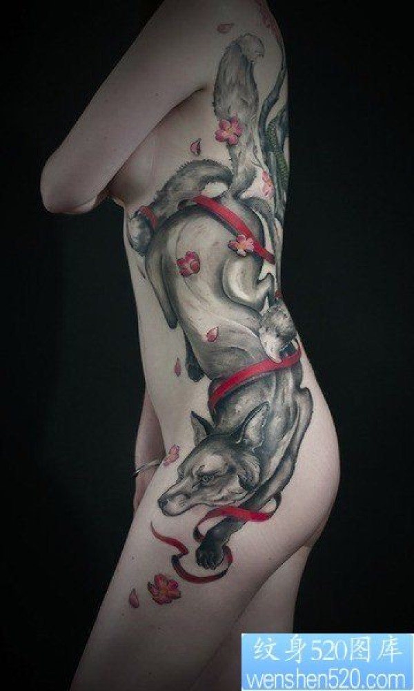 一幅女人腰部狐狸纹身图片_腰部纹身图案大全_纹身图吧