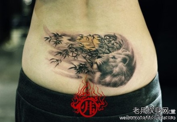 美女后腰经典很帅的狮头纹身图片_腰部纹身图案大全_纹身图吧