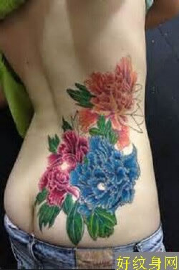 美女后腰上艳丽的鲜花彩色纹身图彩色的芙蓉花_腰部纹身图案大全_纹身图吧