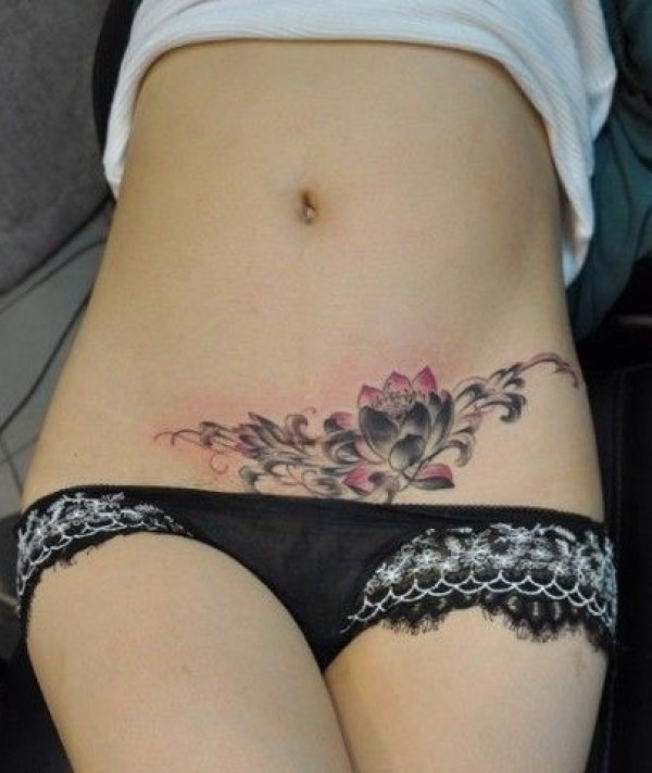 腰部莲花荷叶纹身图案纹身图片_腰部纹身图案大全_纹身图吧