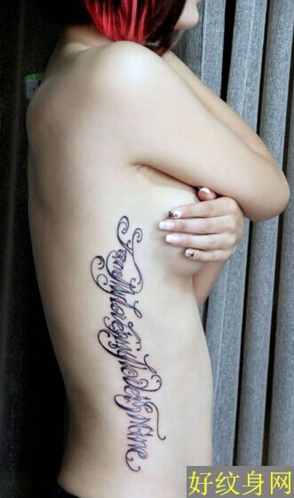 侧腰上清秀的英文字母纹身作品_腰部纹身图案大全_纹身图吧