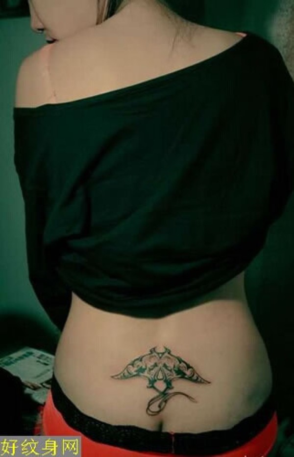 女生后腰处蝙蝠鱼图腾纹身_腰部纹身图案大全_纹身图吧