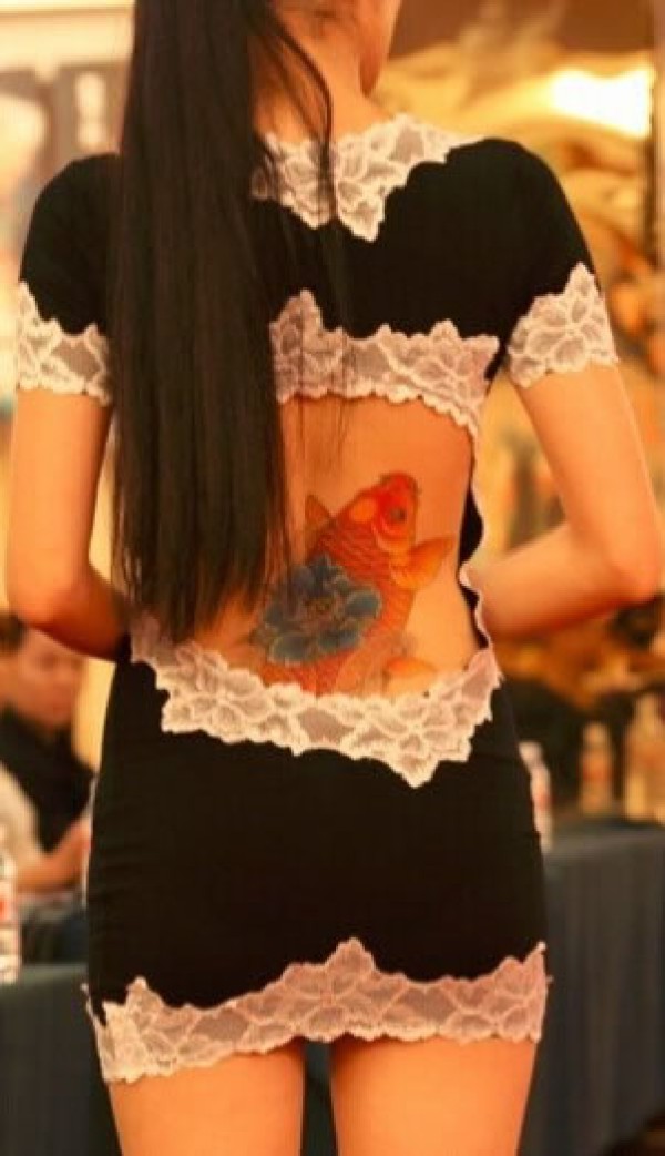 后腰上加鲜花主题的鲤鱼纹身作品_腰部纹身图案大全_纹身图吧