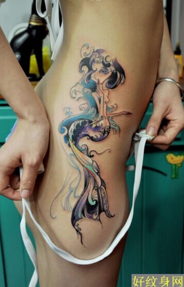 婀娜多姿的彩色美人鱼纹身图_腰部纹身图案大全_纹身图吧