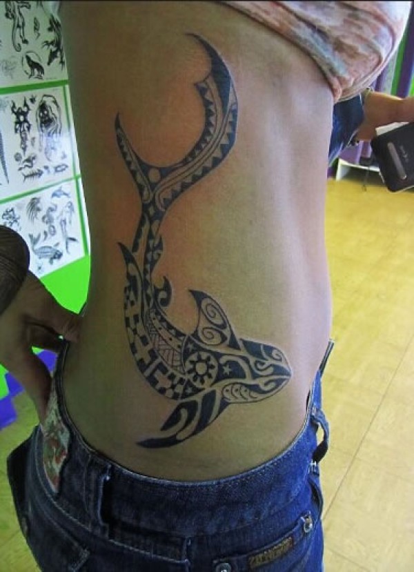 侧腰部位的大鲨鱼图腾纹身作品_腰部纹身图案大全_纹身图吧