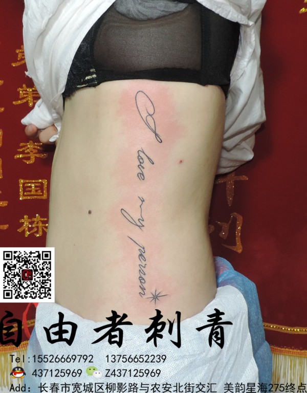 腰部细线条字母纹身图案_腰部纹身图案大全_纹身图吧