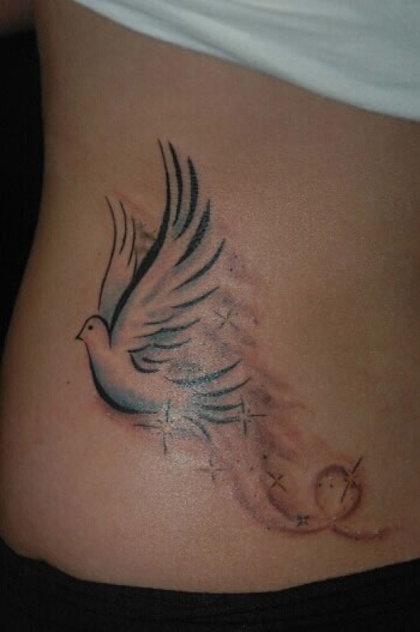 女生侧腰上的和平鸽图案纹身欣赏_腰部纹身图案大全_纹身图吧