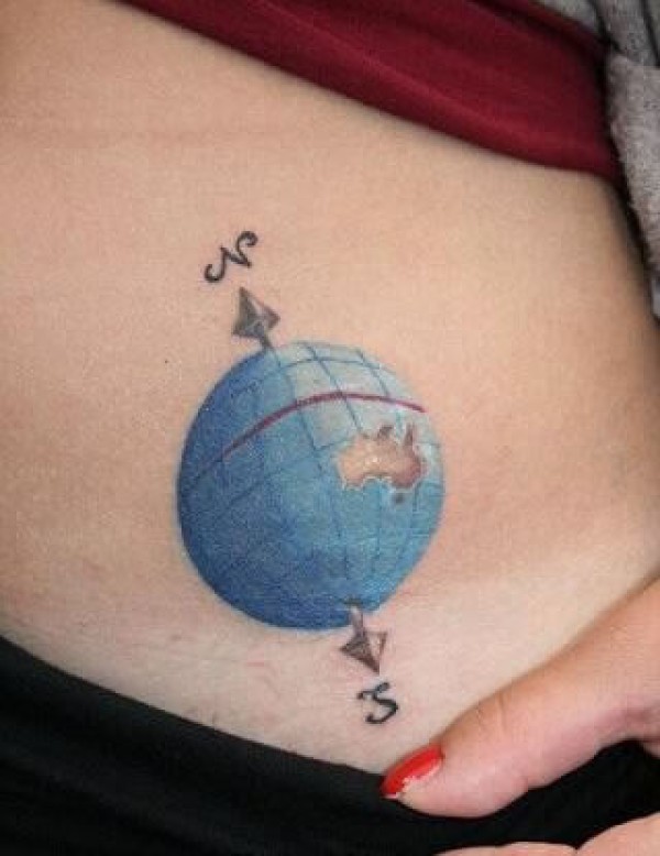 腰部上的地球仪图案纹身从地球仪纹身图案中标_腰部纹身图案大全_纹身图吧