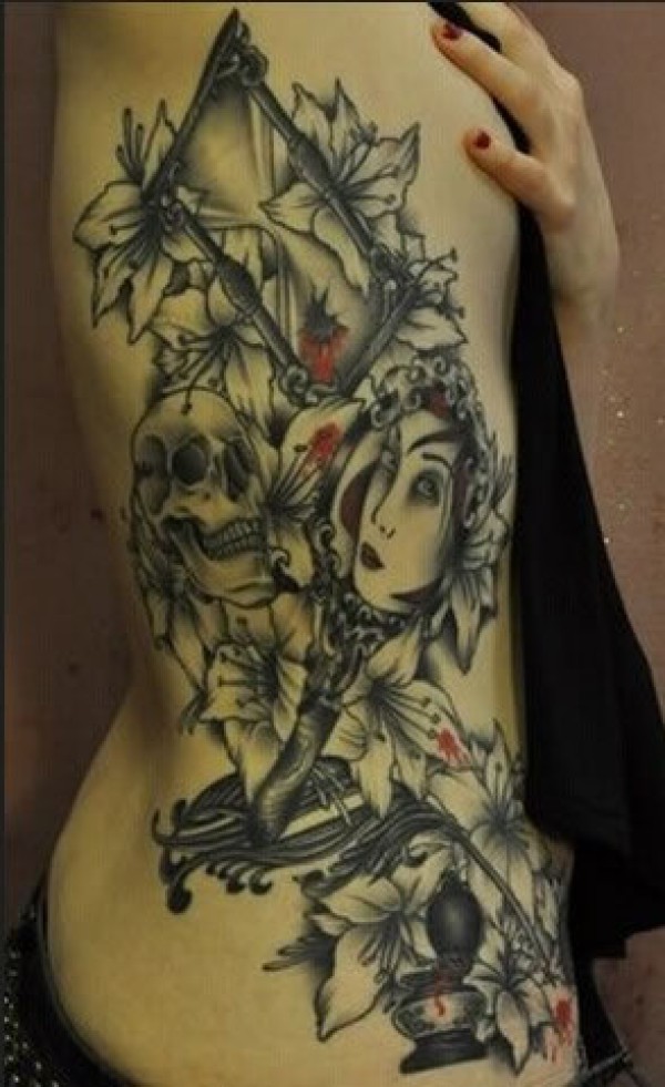 男人侧腰很酷的亡灵装美女纹身_腰部纹身图案大全_纹身图吧