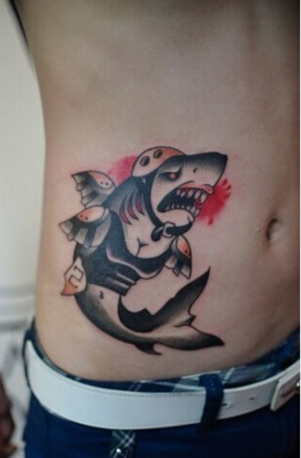 腰部凶狠的鲨鱼图案纹身纹身图案中鲨鱼因血腥_腰部纹身图案大全_纹身图吧