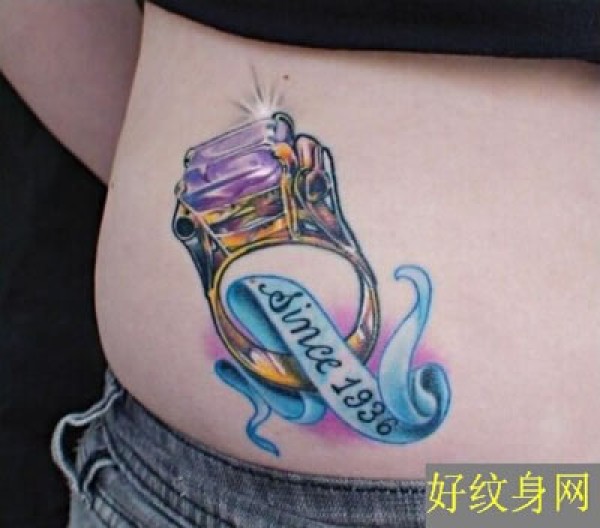 腰部上寓意幸福爱情的戒指纹身图案闪闪发光的_腰部纹身图案大全_纹身图吧